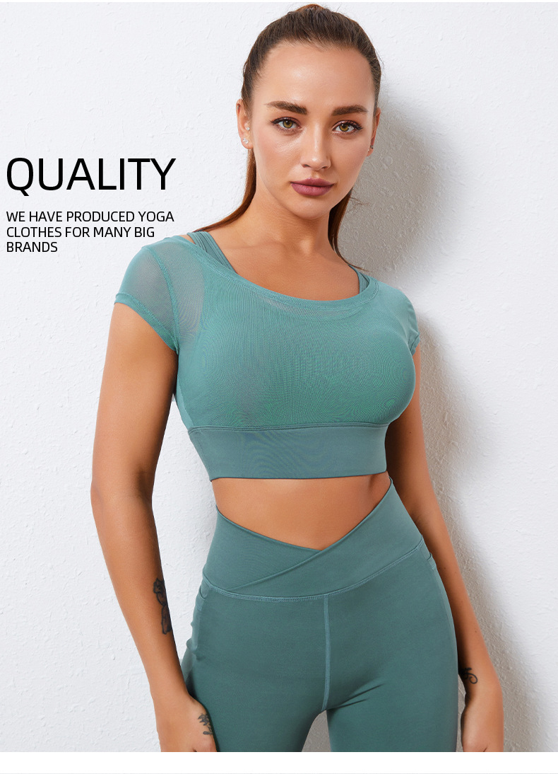 Аптовая заняткі ёгай з кароткім рукавом, рассечаная трэнажорная зала, спартыўная адзенне з папярочнай трэніроўкай, фітнес для жанчын, ёга-топ